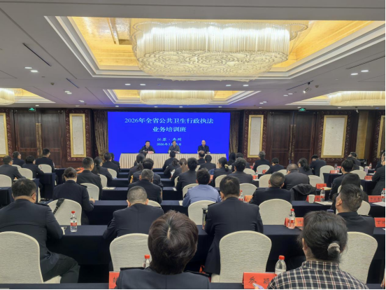 3月25日至26日,江苏省公共场所行政执法业务培训班在泰州顺利举办,全省 13 个设区市的 110 余名执法骨干参训。省卫生健康监督指导中心主任吴涛、副主任张昌明,泰州市卫生健康委员会副主任、市疾病预防控制局局长、市疾病预防控制中心主任张翔出席培训班开班式。泰州市疾病预防控制中心(市卫生监督所)协助承办本次培训。